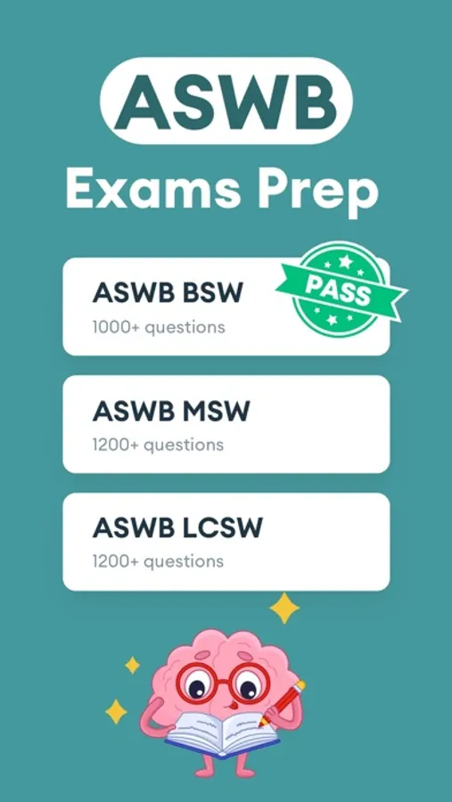 ASWB Exam Prep Practice 2023 now supports Bachelors (BSW), Masters (MSW) and Clinical (LCSW) levels of certification exam preparation. Our exam experts will update and revise the content based on the latest exam syllabus provided by the Association of Social Work Boards (ASWB).