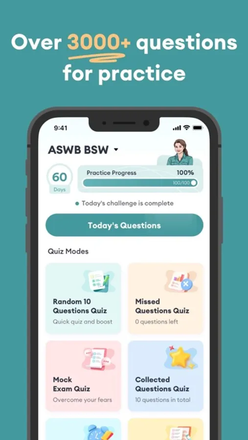 ASWB Exam Prep Practice 2023 is an application carefully designed and developed by industry exam experts. It features over 3,300 high-quality questions with answer explanations, multiple test modes and a scientific analysis system to help you practice efficiently anytime, anywhere and give you a better chance of passing the ASWB BSW, MSW & LCSW certification exams on your first try!