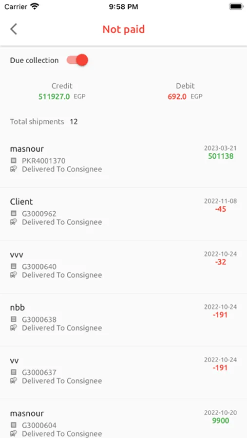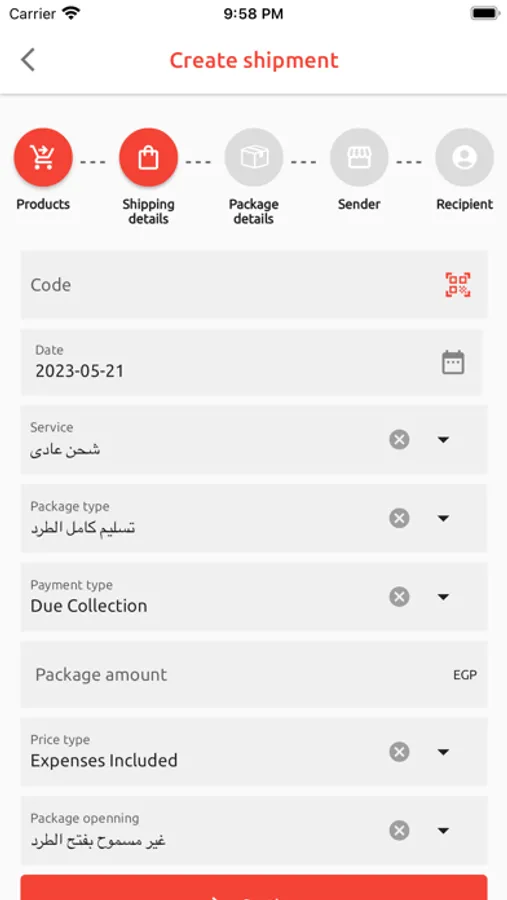 • تتبع حالة الشحنات المرسلة