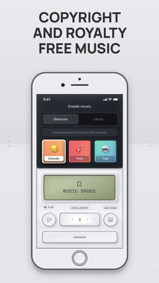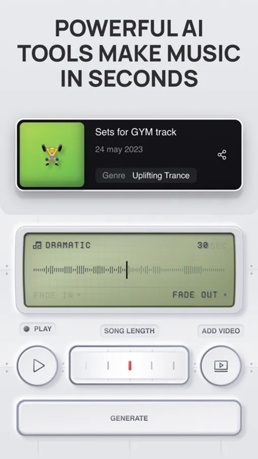 Direct Video Integration: Add your newly crafted soundtrack directly to your videos, saving time and effort. Our in-app video editor ensures seamless integration of audio and visual elements. Adjust original and music volume to fit your project.