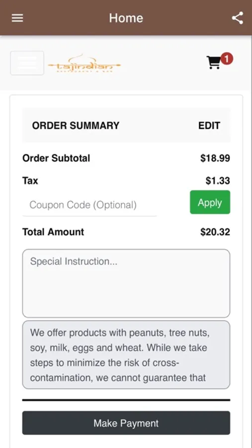 Taj Indian Restaurant is created with the idea to provide Indian food which contains natural herbs and spices. We serve all the dishes on the table as per customer spice level. Our curries are made with a special kind of sauce and fresh ingredients. Our naan bread is cooked fresh in a special clay oven and served hot. Please stop by and try a delicious meal in a cozy environment which caters to all vegans, vegetarians, and non-vegetarians.