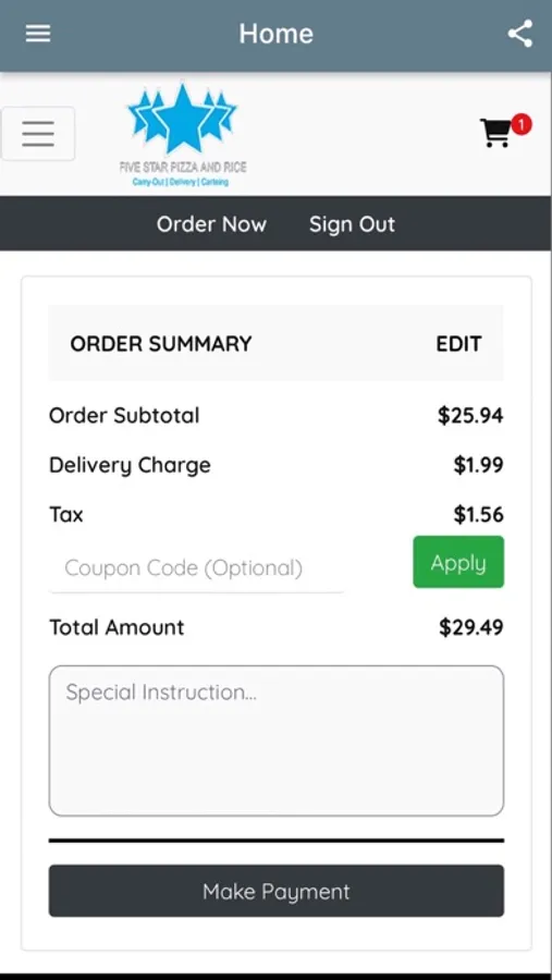 Five Star Pizza & Rice offers up fantastic renditions of all your favorite foods at surprisingly affordable prices. Our quality, variety, and warm customer service have made us a local fav and we're proud to serve the world's most delicious dishes right here in Essex, MD. The special time and care that we put into honing our recipes is a labour of love.