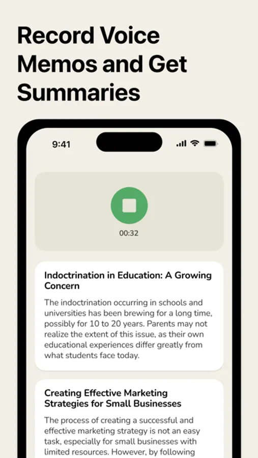 Introducing our innovative app that revolutionizes the way you capture and manage your ideas. With our app, you can effortlessly record voice memos, while enjoying the added benefits of transcription, text editing, intelligent highlighting, and summarization.