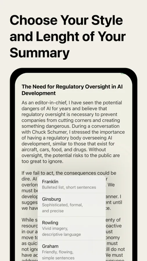 And when you're short on time or need a quick overview, our app creates concise summaries that capture the main ideas from your recordings or written text. It's like having your own personal assistant!