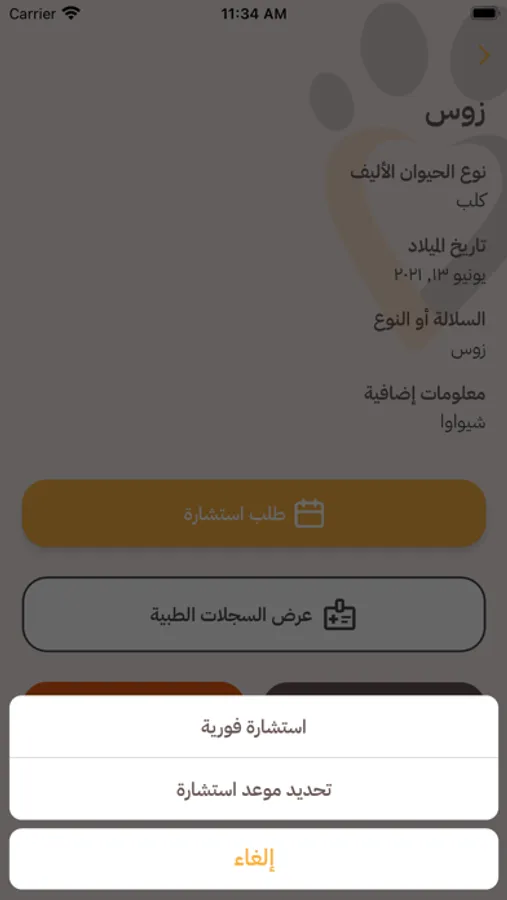الخدمة مصممه لخدمة ملاك الحيوانات الاليفة دون الحاجة للحضور شخصيًا إلى العيادة البيطرية، من خلال خدمة الاتصال عبر الهاتف المحمول التي تربط بين أصحاب الحيوانات الأليفة والأطباء البيطريين للحصول على الاستشارة والنصيحة بشأن رعاية الحيوانات الأليفة. تم تصميم هذه الخدمة لتوفير الراحة النفسية والتأكد من أن حيواناتهم الأليفة سعيدة وصحية