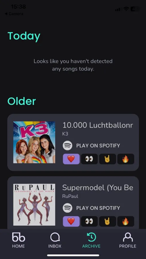 - Inbox that displays the reactions (emojis) on songs you listened to