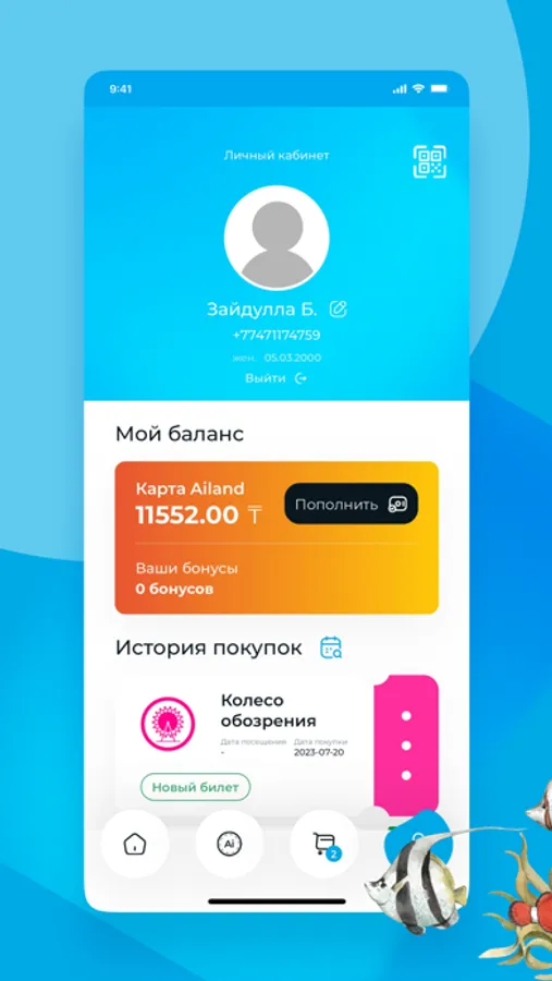 Приложение Ailand позволяет приобрести билеты на океанариум, джунгли, экзотариум, колесо обозрения и другие развлекательные услуги нашего уникального развлекательного центра, прямо с вашего мобильного устройства. Больше не нужно стоять в очередях - все билеты доступны в нашем удобном приложении. Кроме того, наши посетители могут накапливать бонусы, используя мобильное приложение Ailand. Откройте для себя мир чудесных подводных глубин, ощутите адреналин экстремальных аттракционов и погрузитесь в атмосферу удивительных приключений. Ailand - это уникальный проект с приключениями, отдыхом и экстримом для всех возрастов. Мы надеемся, что вы хорошо проведете время у нас!