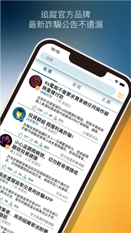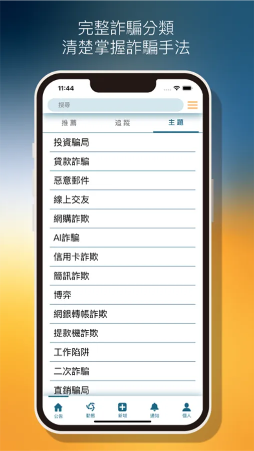 我們將各種詐騙手法做分類,讓用戶更快的找到自己關注的議題。
