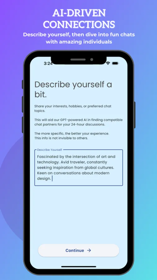 Give AI a glimpse into your world. Your interests, passions, and preferences help form the foundation of each connection. By leveraging intelligent algorithms, the platform facilitates meaningful conversations with incredible individuals who share your interests.