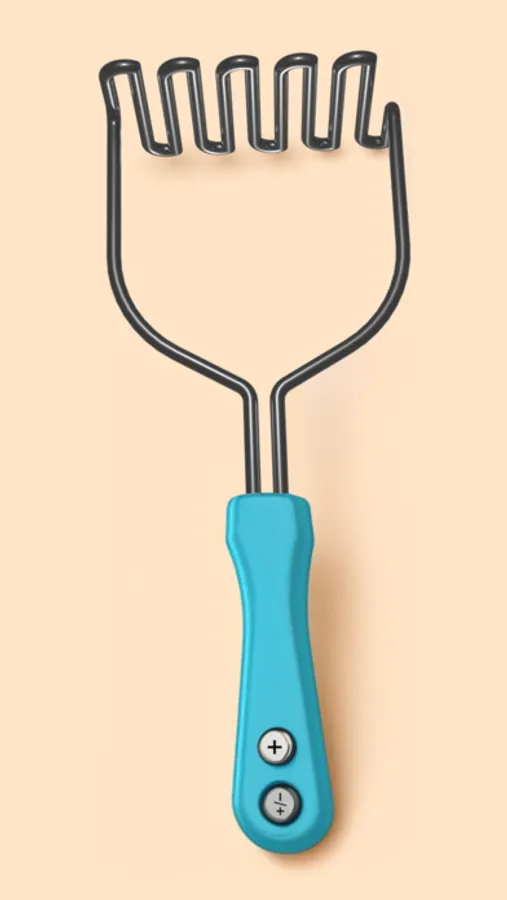Creative GUI Design: Featuring a potato masher whose wavy wire visually represents the sync applied to the signals.