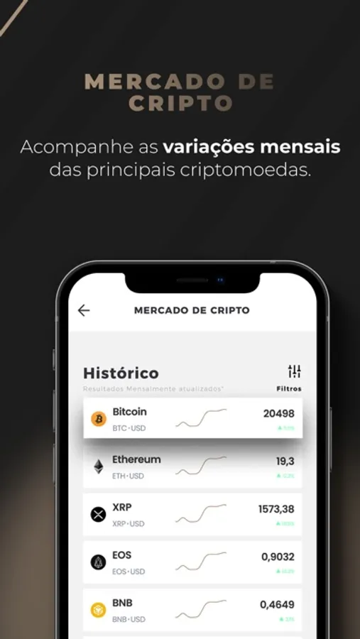 - Informações do mercado de cripto: acesso às variações mensais das principais criptomoedas, que te permitem a entender as tendências de mercado.