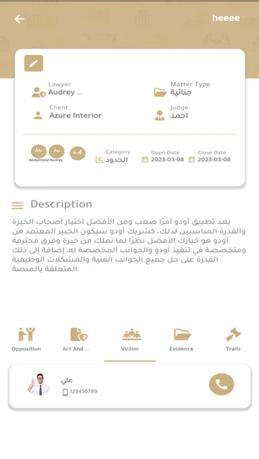 - Managing court cases, sessions and their attachments, reviewing the parties to the case and the documents related to the case.