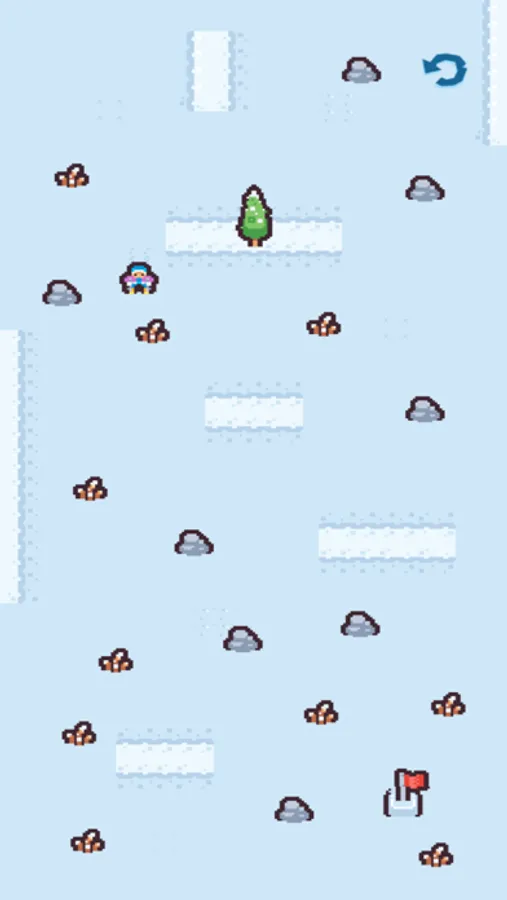 You are skiing solo in a Ski slope with rough terrain and heavy winds, find your way to the flag without falling off the cliff!