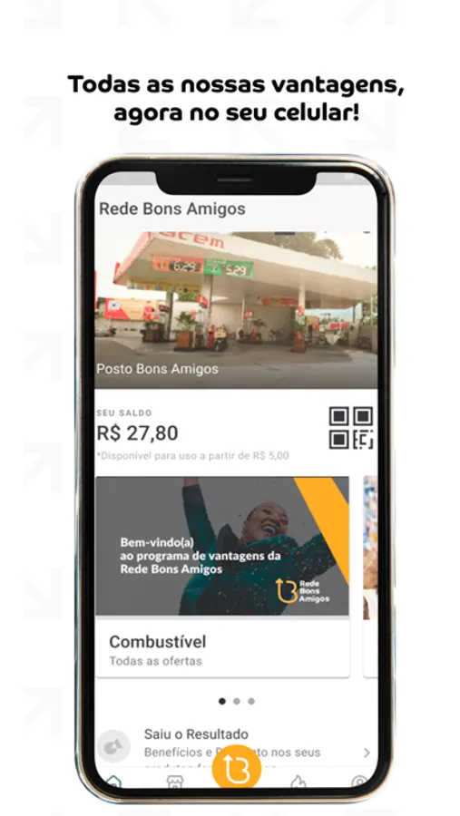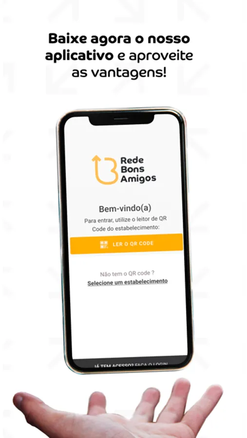 2) Depois de instalado, abra o app e faça o cadastro ou utilize o QR Code quando for ao posto da Rede Bons Amigos