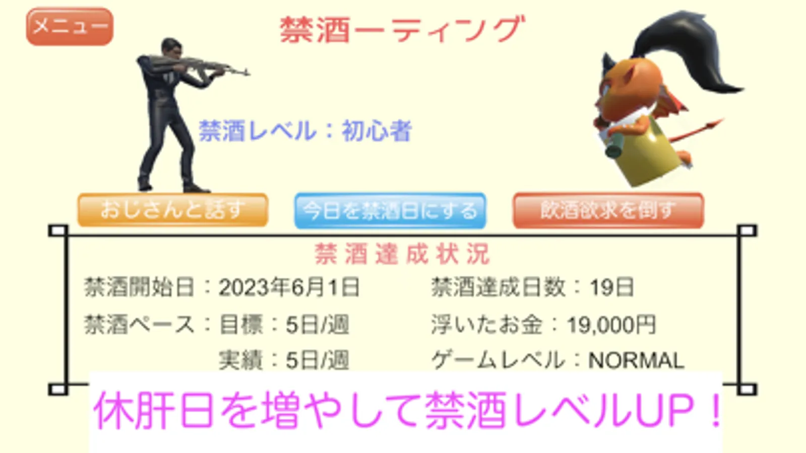 "Defeat the enemy (desire to drink) in a shooting game → Today is a rest day"