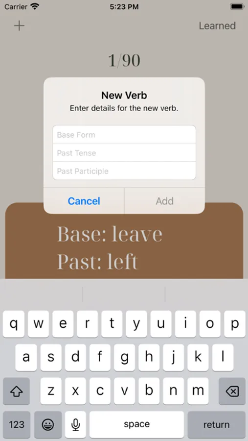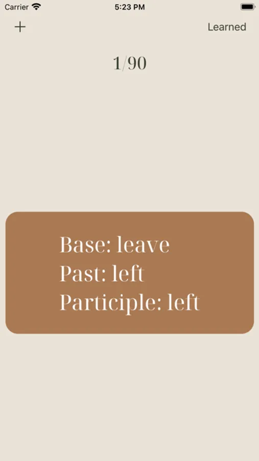 Each flashcard presents the base form, past tense, and past participle of a verb, and you can test your knowledge and track your progress directly within the app. Forget about rote memorization – with Irregular Verbs, learning becomes a fun and engaging process!