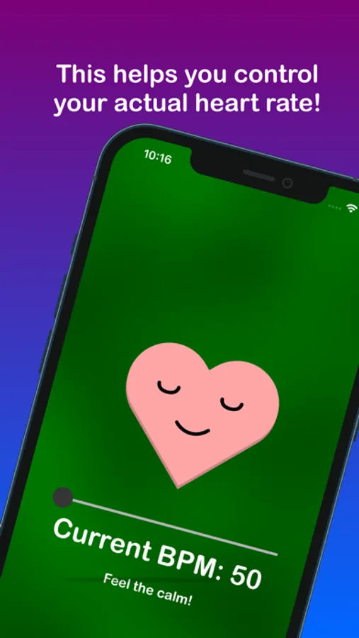 Finally, the app simply slows down the simulated heart beat, which can help slow down your real heart rate!