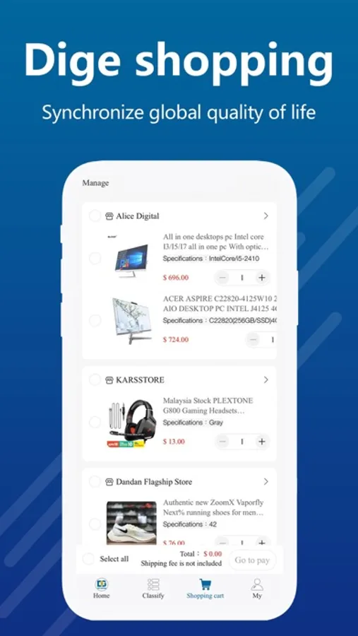 Dige shopping app is a global e-commerce shopping website. We have gathered world-renowned brands and cooperated with many brand factories.We provide products with the best quality and the most affordable prices in the world, so that you can shop and buy without worry.