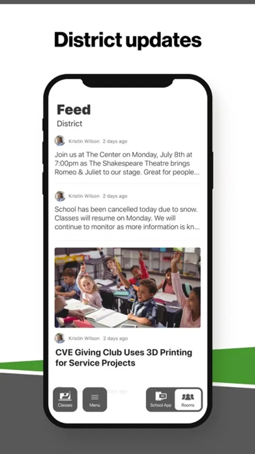 In the Live Feed is where you'll find updates from the administration about what's going on in the district right now. Whether that's celebrating a student's success, or reminding you about an upcoming deadline.