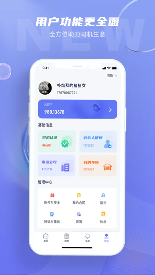 一键快捷登录,支持多角色转换,在线抢单,快捷查询账单等功能。