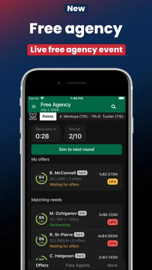 Free Agency Day: Engage in interactive activities by submitting offers to players. Players take the time to analyze offers from other teams and make decisions that suit their interests. Negotiate and sign the best talents!