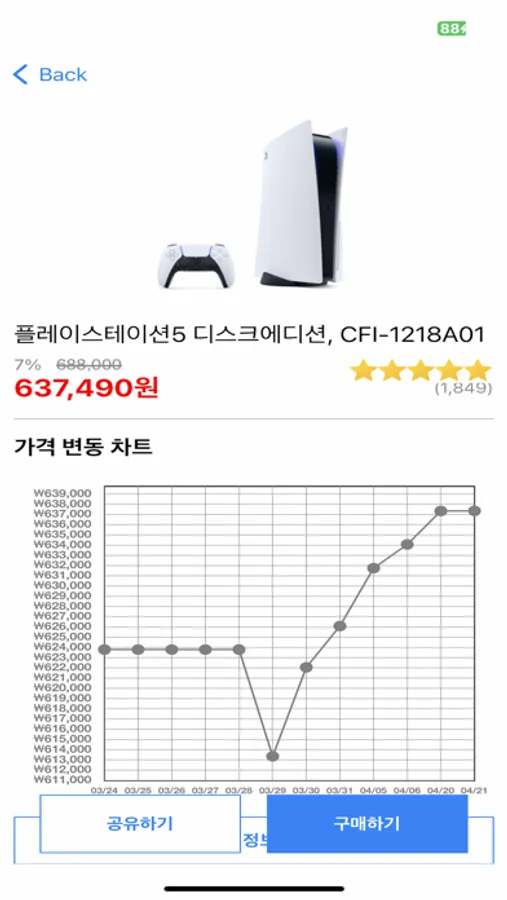 매일 달라지는 가격 추세를 실시간 그래프로 볼 수 있습니다.