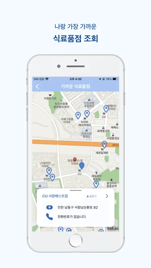 - 지도에서 가까운 식료품점을 찾아볼 수 있어요.