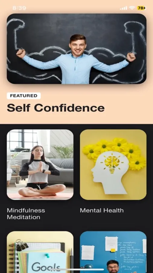 Our app focuses on building self-esteem as it is an integral part of self-improvement. Our self-esteem-building app provides practical tools and exercises to help you develop a healthy sense of self-worth and confidence. With guided practices and empowering strategies, you can overcome self-doubt, embrace your unique strengths, and step into your full potential.