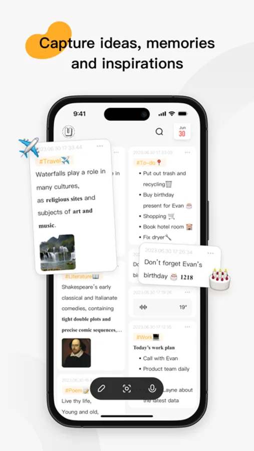 Capture ideas, memories and inspirations at anytime, anywhere.