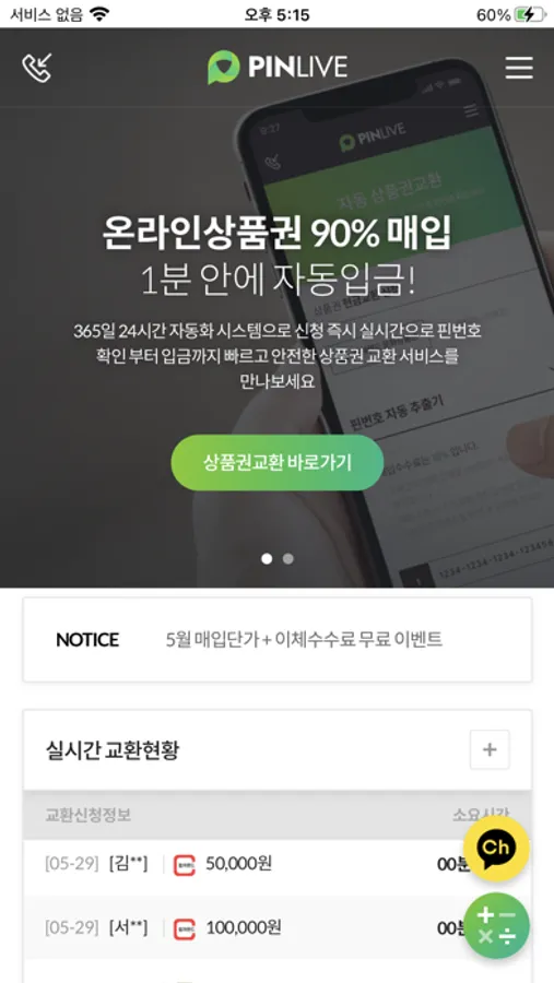 문화상품권 및 해피머니 상품권 30초 매입 서비스