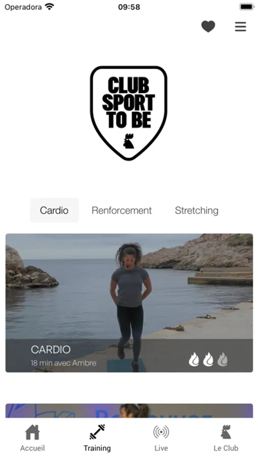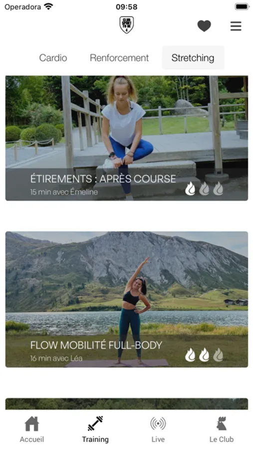 - entraînements cardio, renforcement , stretching, HiiT et autres.