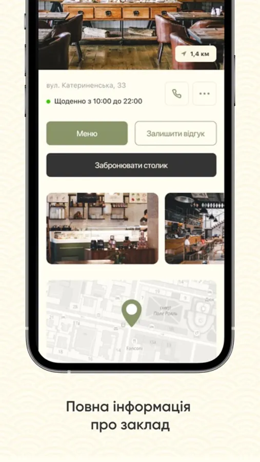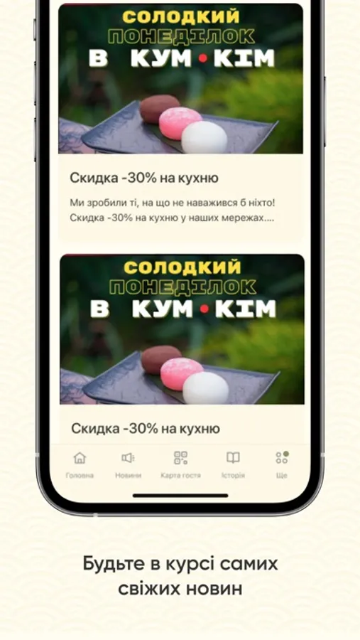 * Новини, промоакції та події кожного кафе та мережі в цілому