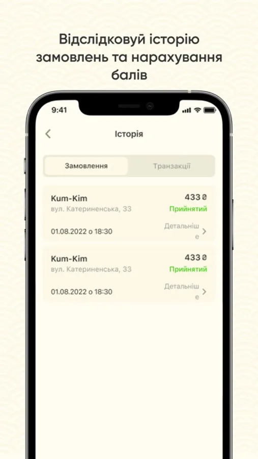 * Особистий обліковий запис з повною історією замовлень, автоматичну систему бонусних балів та їх поточний баланс