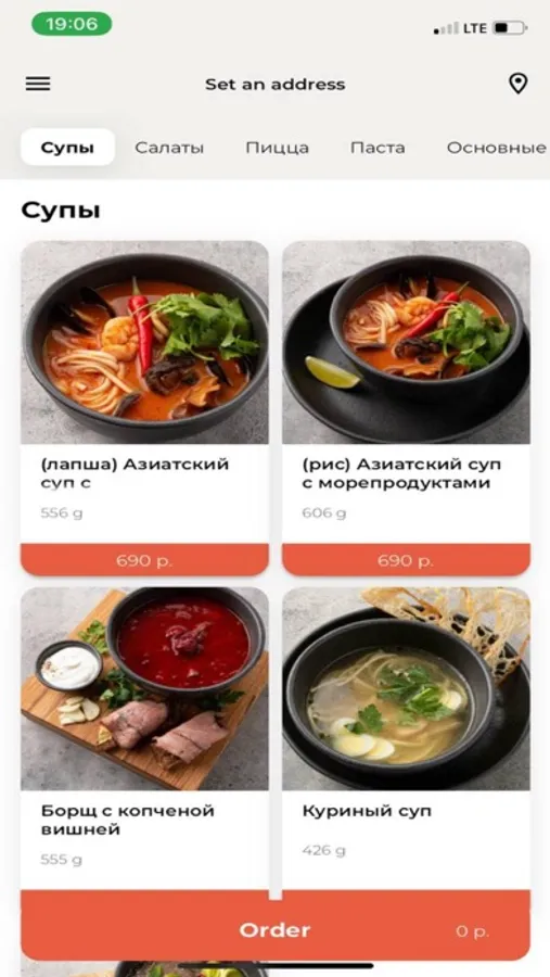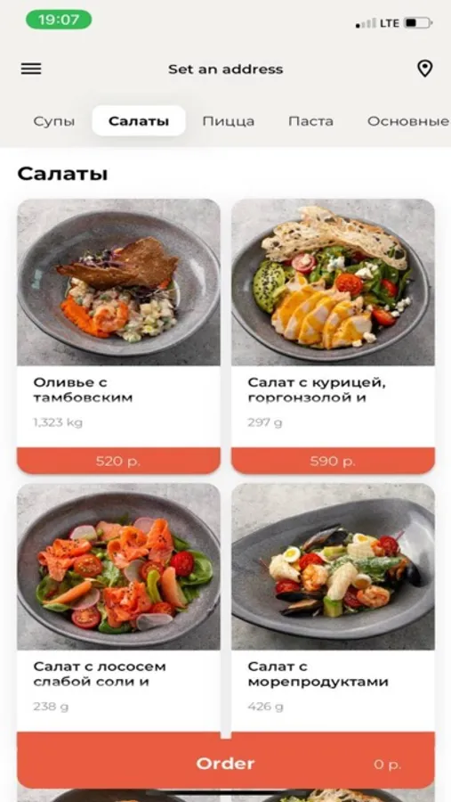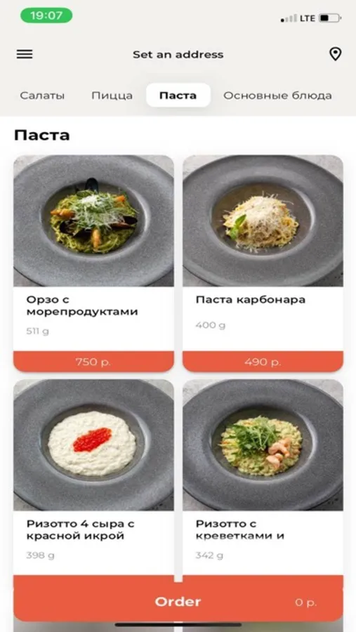 - Выберите категорию блюд и добавьте блюдо в корзину