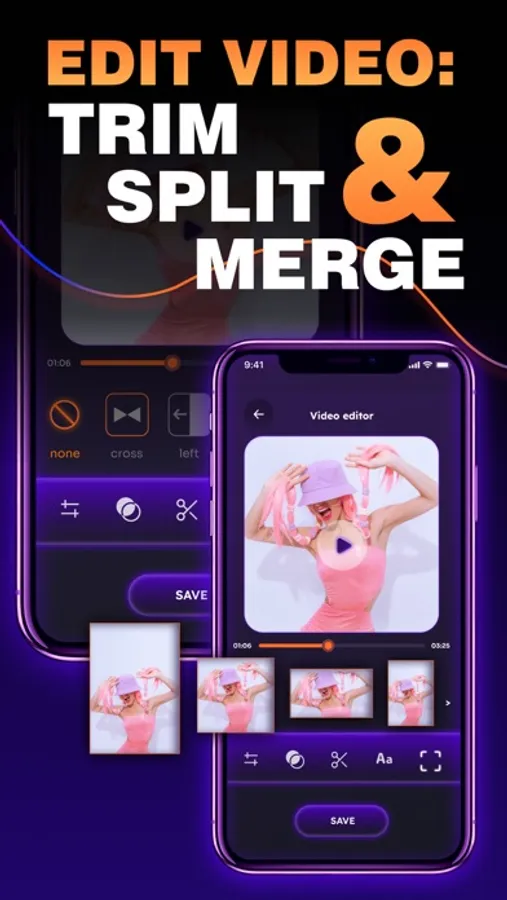 Effortlessly edit your videos. Trim unwanted parts, split longer videos into shorter clips, and merge multiple videos into a seamless masterpiece.