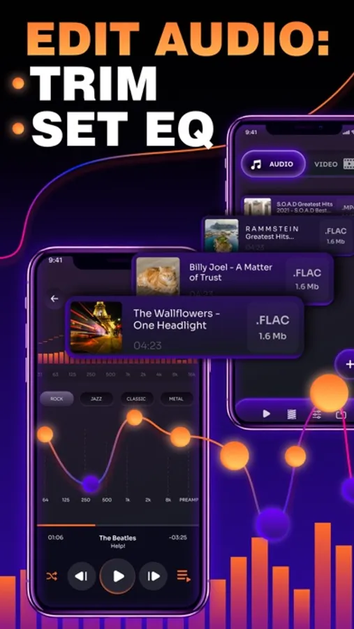 Transform your audio tracks like a pro. Trim audio files with precision. Achieve the perfect balance and clarity for your soundtracks with a custom 8-band equalizer.