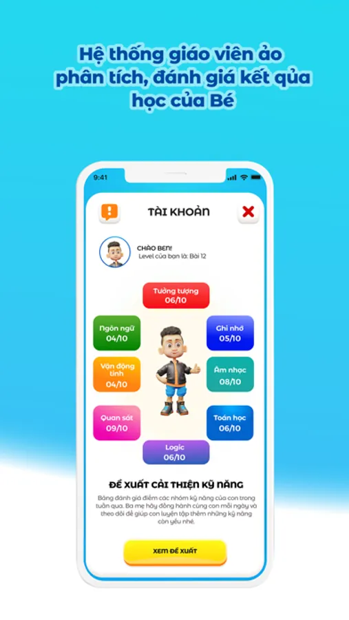 - Hệ thống theo dõi tiến trình và kết hợp với trí tuệ nhận tạo (AI) để đánh giá cũng như gợi ý các kỹ năng cá nhân mà các bé cần cải thiện.
