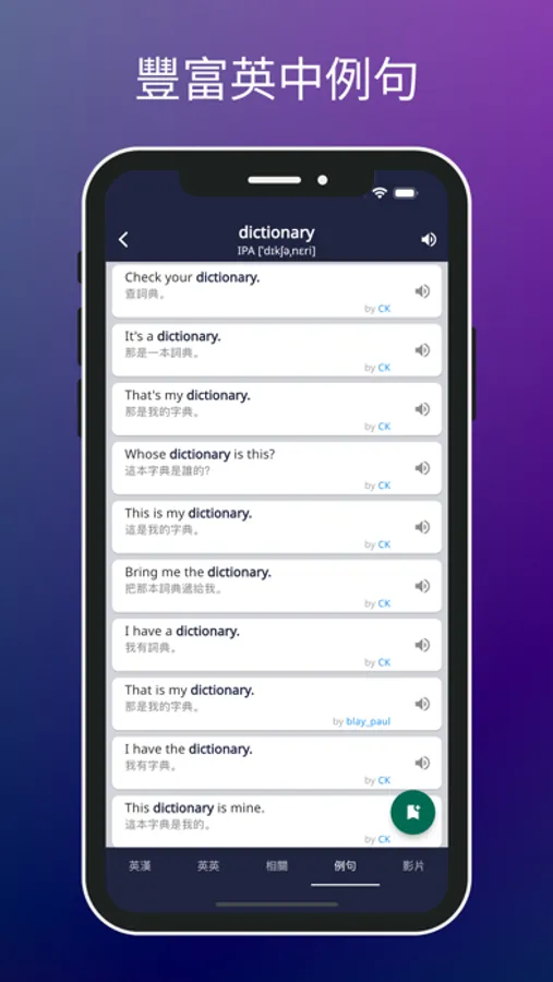 2. 豐富例句:每個單字都有多樣化的例句,讓您更了解單字的使用情境。