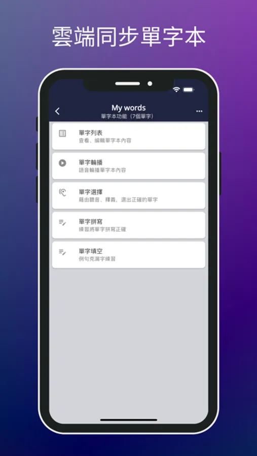 7. 雲端單字本:您存儲在單字本中的單字現在可以在多個裝置上同步,讓您隨時隨地輕鬆學習。