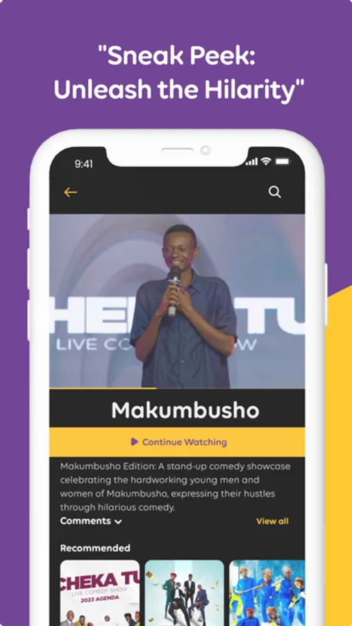 Welcome to Chekaplus, the ultimate comedy app designed to keep you entertained and connected to the world of laughter! Explore our extensive collection of side-splitting comedy content from Africa's finest comedians, guaranteed to tickle your funny bone. But that's not all - stay up-to-date with upcoming comedy events, and easily purchase tickets to secure your spot at the hottest shows. With Chekaplus, comedy is just a tap away, ensuring endless laughs and unforgettable entertainment experiences.