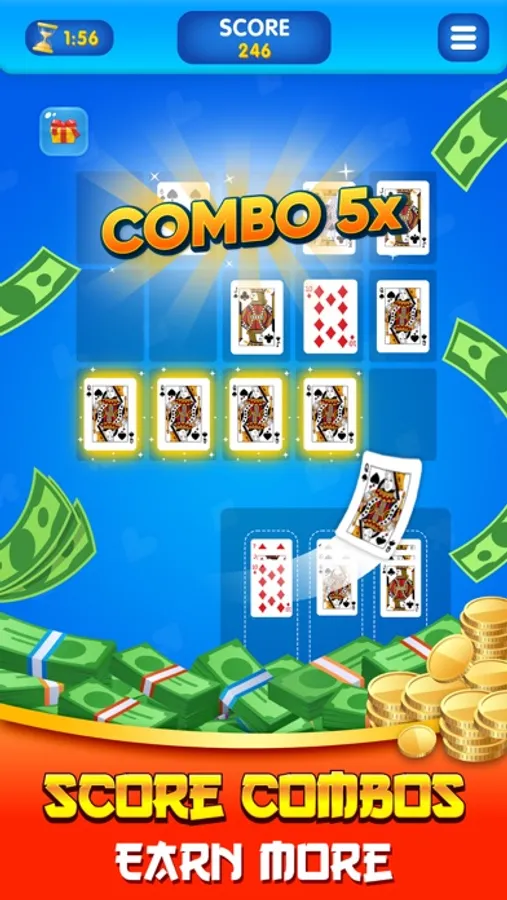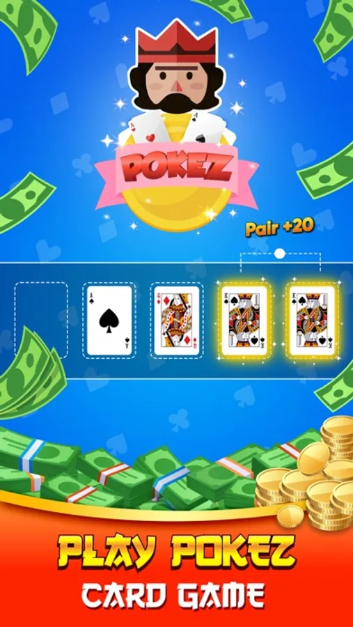 In the simple casual puzzle, all you need to do is to place the cards dealt to you into the table to form a hand of poker and clear those cards while score points in the process. Play with your friends and people from around the world!