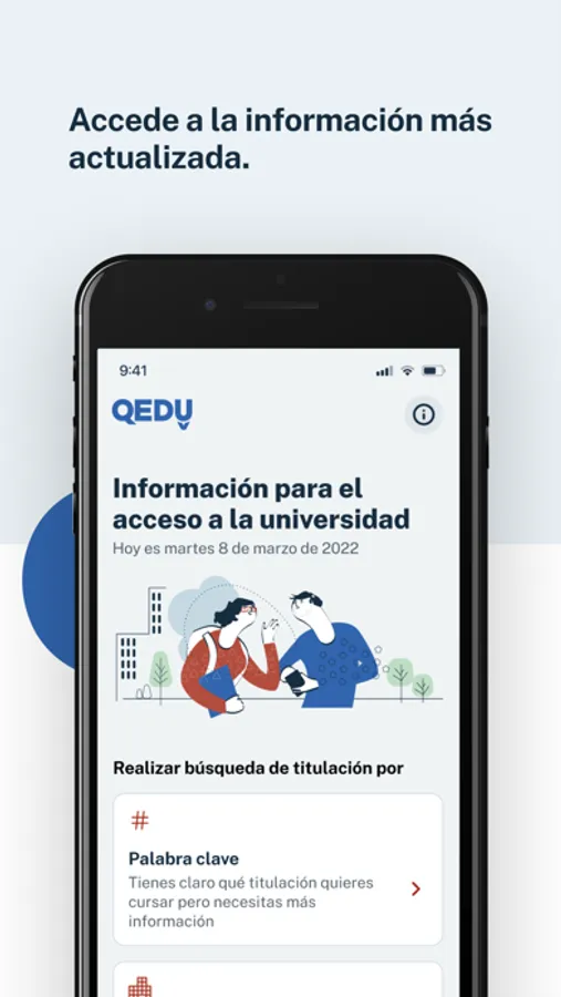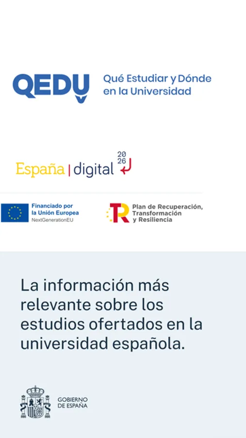 QEDU, qué estudiar y dónde en la universidad” para ofrecer información a la población que esté pensando en acceder a la Universidad. QEDU recopila la información de las titulaciones impartidas en las universidades españolas y ofrece múltiples datos de las mismas, divididas en tres secciones para cada titulación: