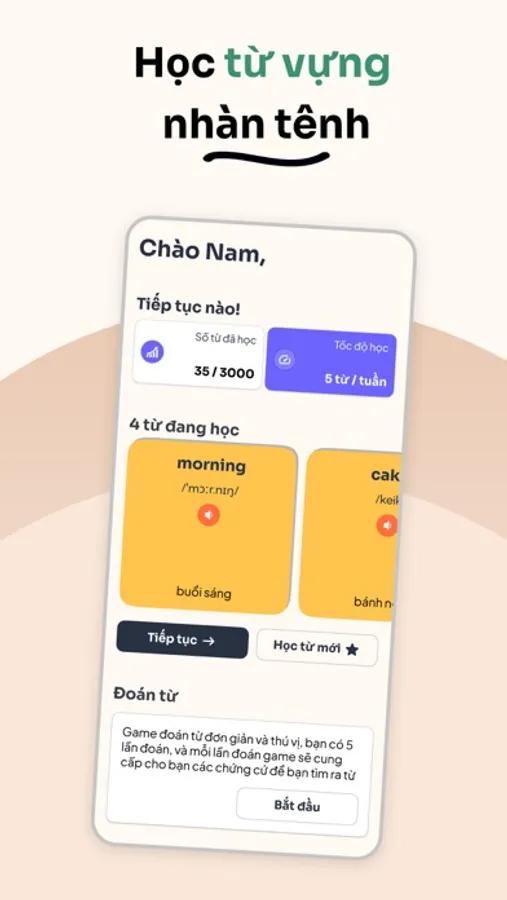 Bạn có thể chọn từ vựng phù hợp với cấp độ của mình.