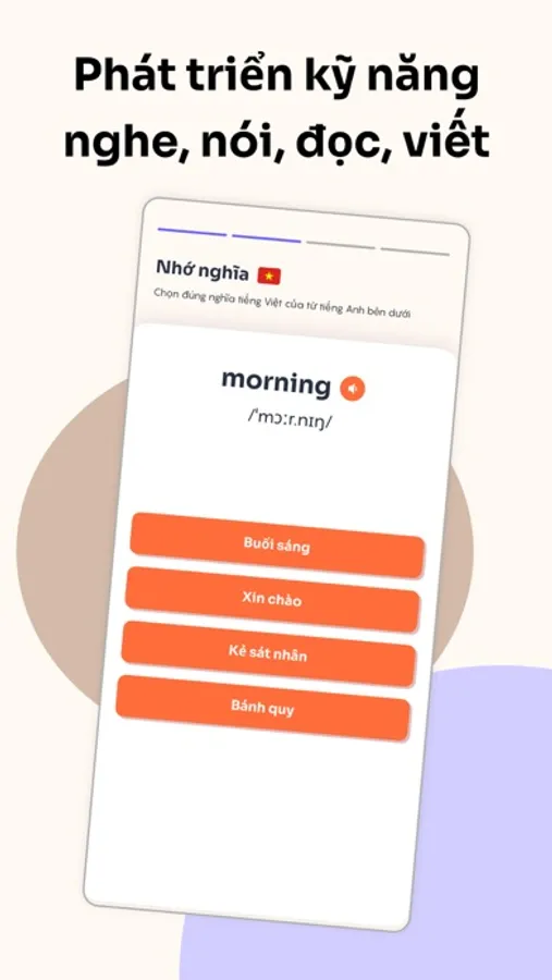 Phương pháp học từ vựng trong app giúp các bạn lên tay từ vựng tiếng Anh và trở nên giỏi nghe, nói, đọc, viết từ vựng. Cái này rất hữu ích để đạt điểm cao trong kỳ thi tiếng Anh, hay xin học bổng, hay đơn giản là ứng dụng và công việc, cũng như giao tiếp với người nước ngoài.