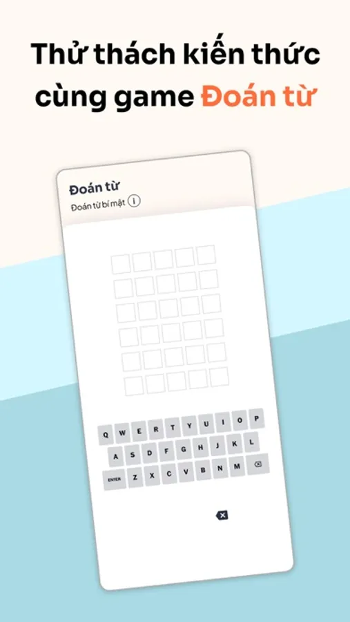 Có một trò chơi đoán từ có 5 ký tự. Mỗi ngày, ứng dụng sẽ đưa ra một câu tiếng Anh và bạn cần dựa vào gợi ý để tìm ra từ bí mật của ngày đó. Đảm bảo trò chơi này vừa hack não vừa giải trí.