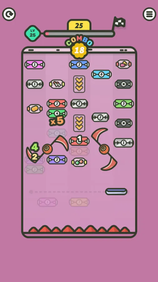 Frenzy Fall is a unique and challenging game to play. Blocks will fall from the top, control the paddle to bounce the ball and hit the blocks to clear it. While making sure that the ball does not fall down. There are multiple power-ups that can destroying blocks, protect the ball from falling, increase the size of the paddle or balls, and many more. Some power-ups have negative effects, such as shrinking the balls or paddle, reduce the gameplay zone, changing the ball's gravity and many more. So not every power ups will help.