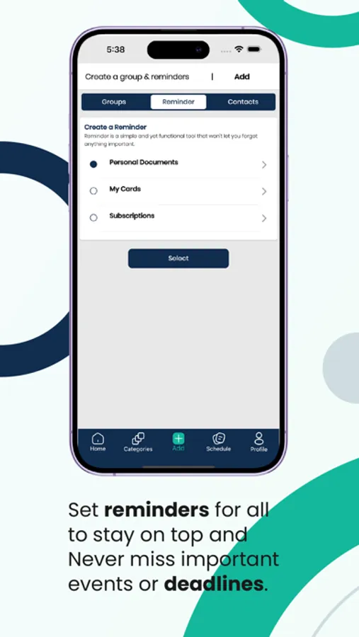 Never miss an important event or deadline again. Set reminders for yourself, family members, or group members to ensure everyone stays on top of their commitments and responsibilities. and users can set up customized reminders for their personal documents, cards, and subscriptions with an Alarm to notify them before the expiration day.