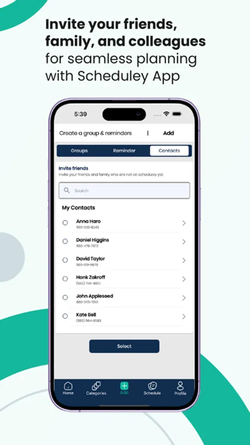 Scheduley is an application that provides an integrated calendar linked with friends, family, and groups created from a contact list.