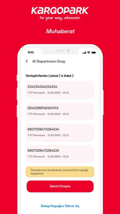 Dolaplarımız her saniye güvenlik kontrolünde ve dolabınızı sizin dışınızda kimse açamaz! Siz kargonuzu KARGOPARK noktasından teslim alana kadar sizin için güvenle saklıyor, kargonuzu beklemek yerine kargonuzu sizin için bekletiyoruz. Günlük koşuşturmacanızda hayatınızı kargo teslim alma durumuna göre belirlemeyin, siz kargocuya değil kargocunuz size uysun!