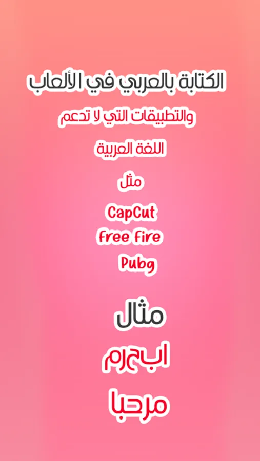 This app will help you to write in arabic in alot of apps like capcut Photoshope, Free Fire, Pubg and more